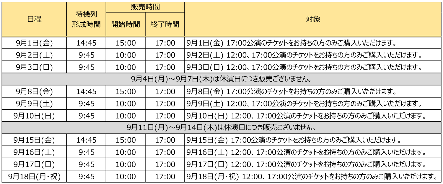 ・9月3日(日)の公演…9月10日(日)23:59まで