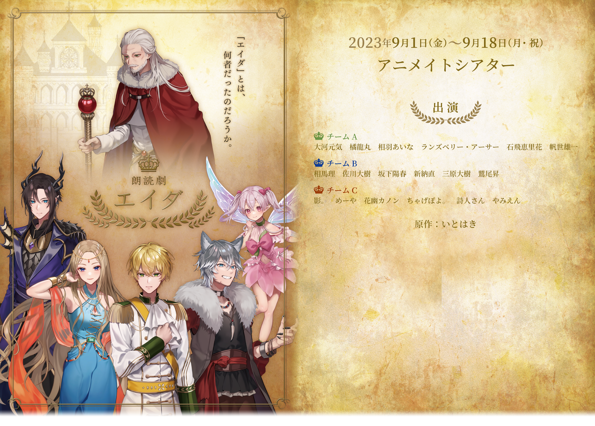 本公演では、声優・俳優・配信者の3つのチームに分かれ、それぞれで朗読劇を上演します。